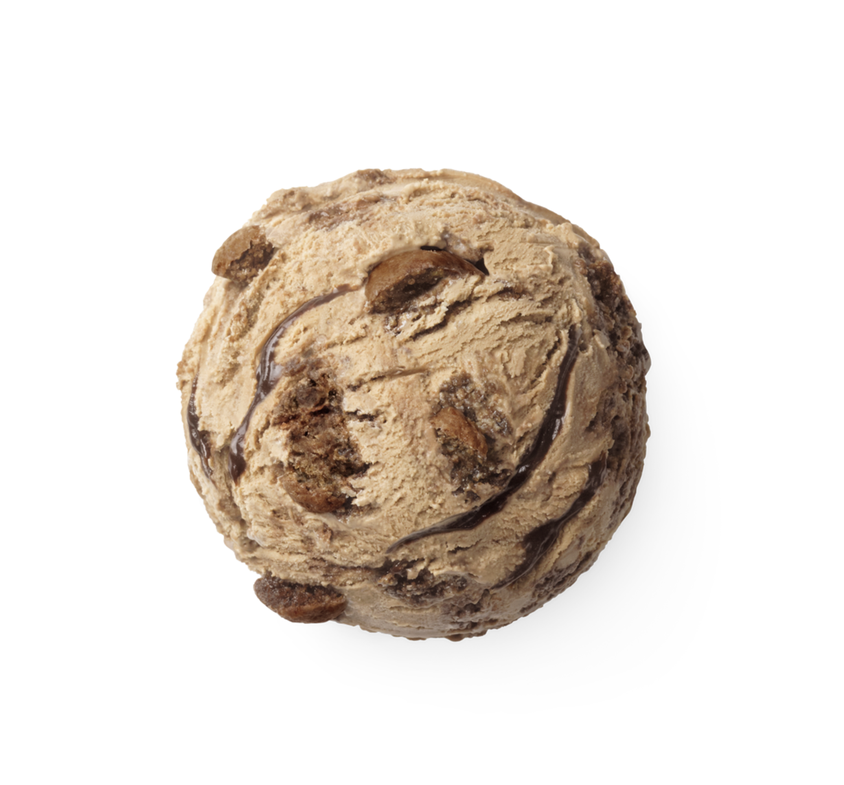 Vanilla ice cream, caramel sauce and brownie pieces.![Caramel, Biscuit & Cream Image]()